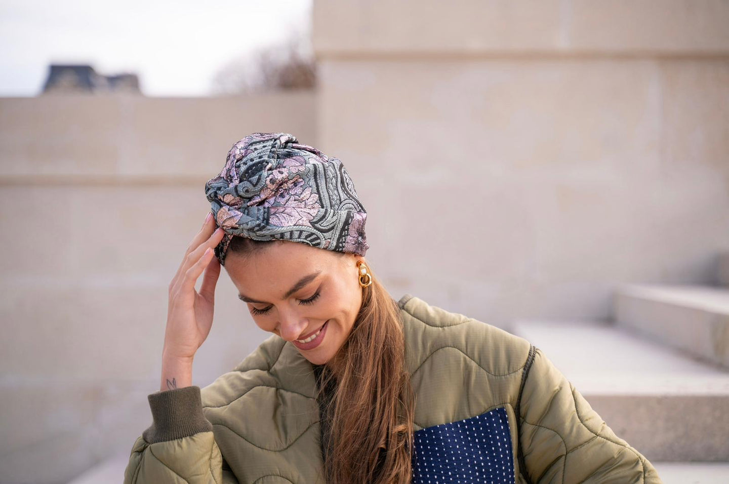 Le résultat du turban Paloma Germain : plus besoin de s'embêter en noeud compliqué comme nos grands-mères ou même arrières grands-mères le faisaient ! Non, pour nous, il suffit de l'enfiler pour être stylée en un tour de main.
