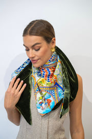 Ce triangle de soie est en bi-matière Velours de soie et soie 100%